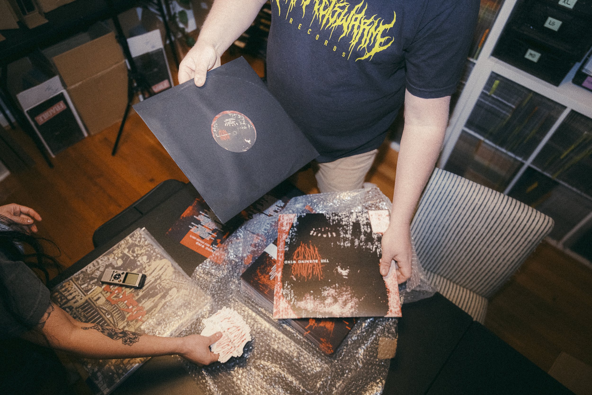 “When I started this, I said ‘I don’t care about profits lets just pump out the best looking thing we can.’ At the end of the day, I want people to get this and be like wow this is so sick. Like, the bands are just like—Animosity specifically, when he got his package in, he immediately called me and was like ‘dude..this is the sickest vinyl I’ve ever seen.’ And that like, means more to me than anything”