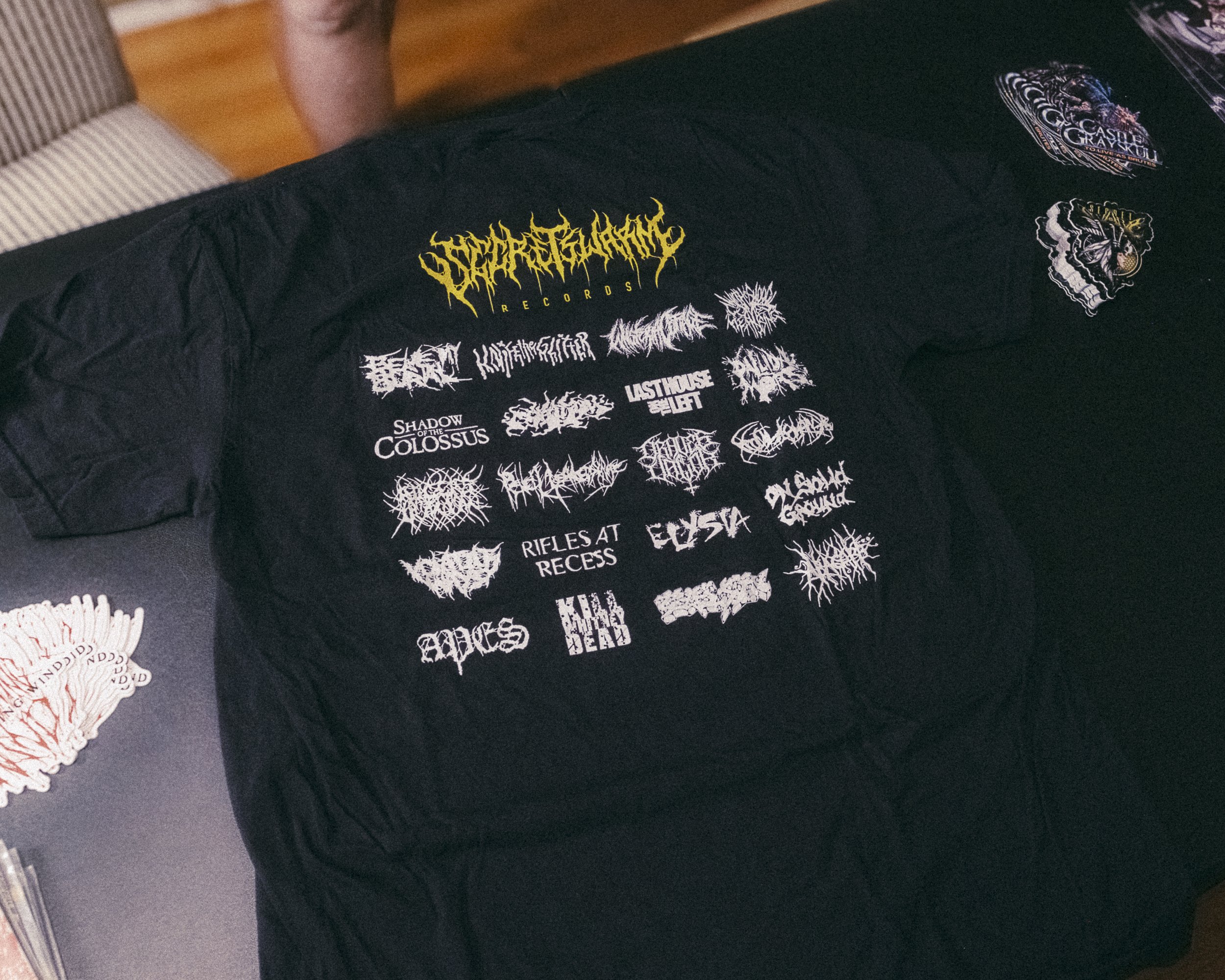 A Secret Swarm shirt featuring the first twenty releases